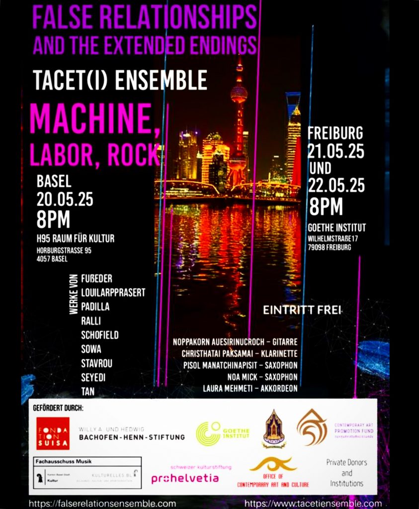 Private sponsors and institutions, Basel Fachausschuss Musik BS/BL, Pro Helvetia, Willy A. and Hedwig Bachofen-Henn Foundation, Goethe-Institut, Fondation Suisa, Office of Contemporary Art and Culture Thailand, Contemporary Art Promotion Fund Thailand.